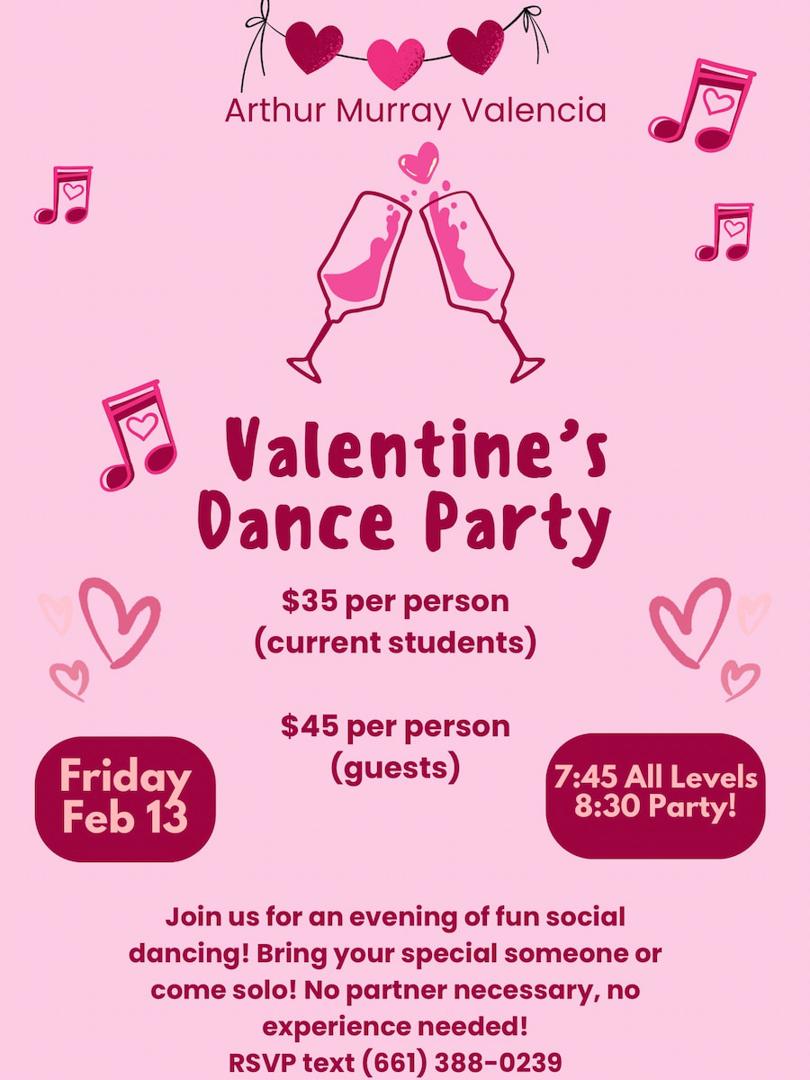 *Tickets are non refundable and only redeemable at Arthur Murray Valencia. Money cannot be transferred towards lessons. Must be 18 years or older. In person purchase is also available.